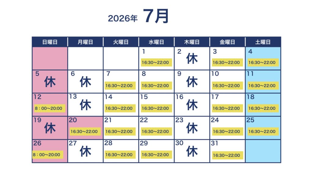 営業日 (火)(水)(金)(土) 16:30〜22:00